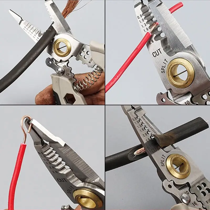 Meet a variety of electrician operation requirements such as cutting the wire, stripping, crimping, winding, splitting, clamping, and wrenching. There is no need to change the pliers frequently during use, which improves work efficiency. Suitable for wires of 0.8/1.0/1.3/1.6/2.0/2.6.
