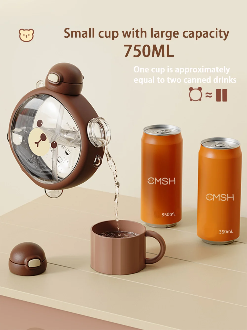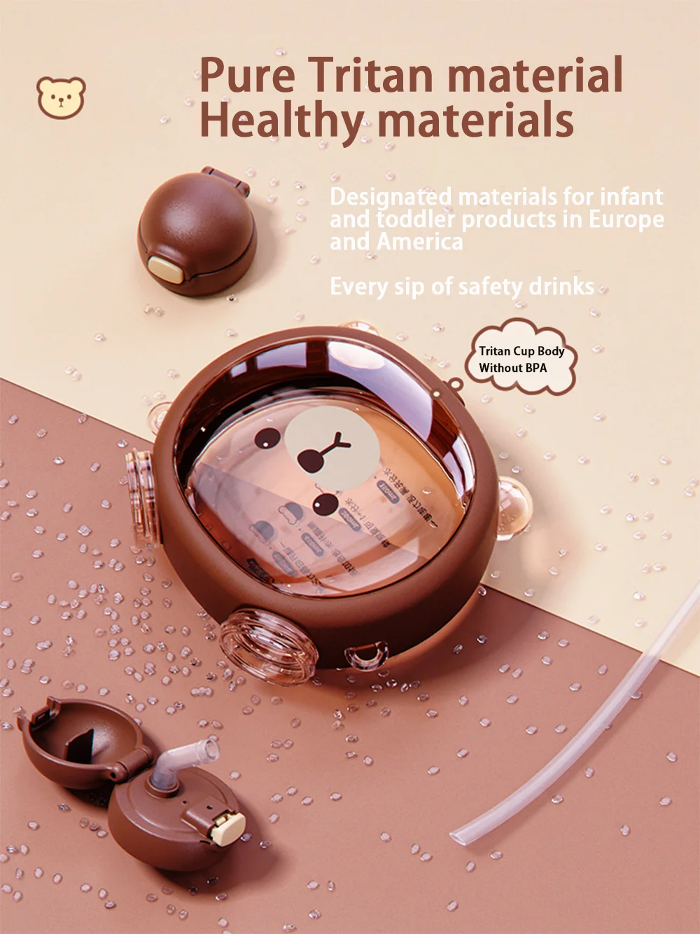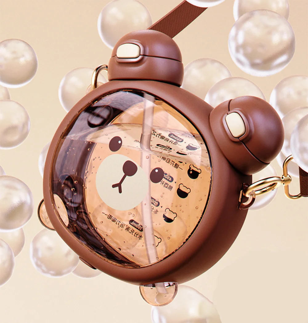 Features: One-button open cover, silicone nozzle, adjustable strap, cute bear shape
