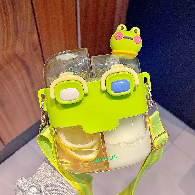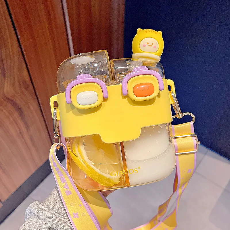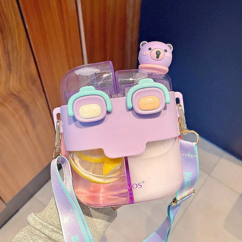 Double Drinking Bottle Straw Cup with High Beauty Cartoon Out