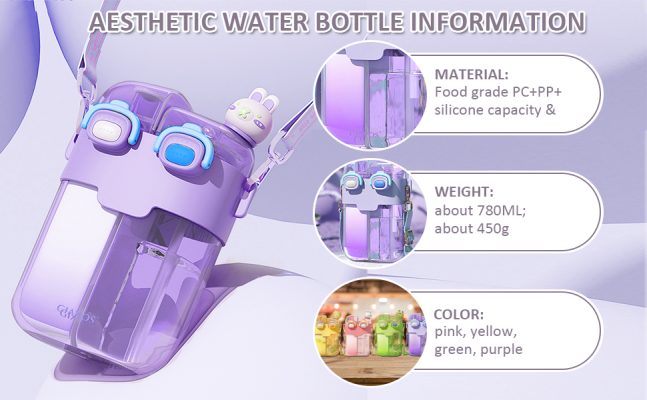 【High Quality Drinking Bottle】The water bottle with strap is made of environmentally friendly plastic, which is healthy, sturdy and durable. This sports bottle holds 780ml of fluid to meet your daily water intake. The mouth of the water bottle with straw is designed with a sealing cap to keep the straw clean.
