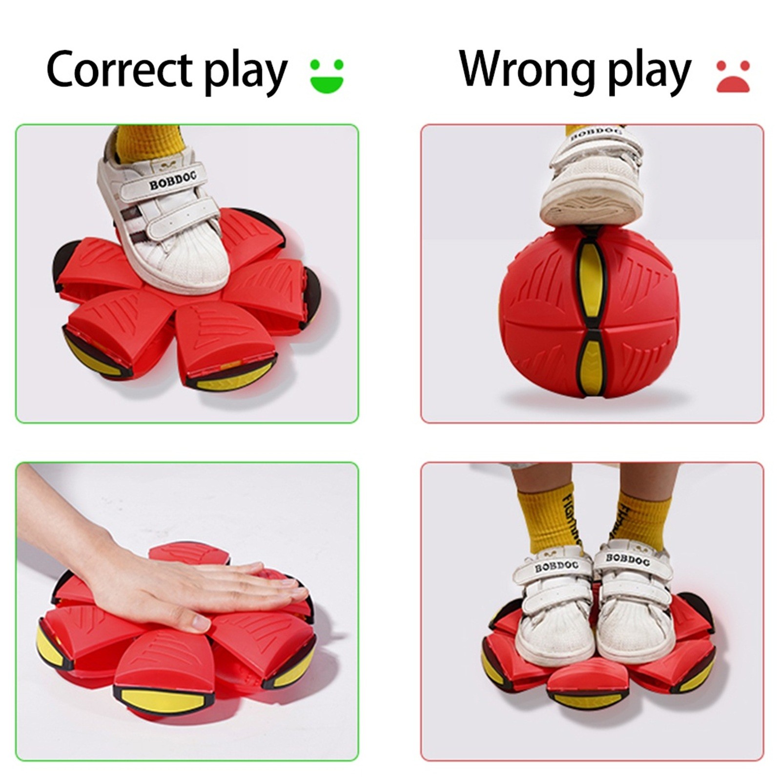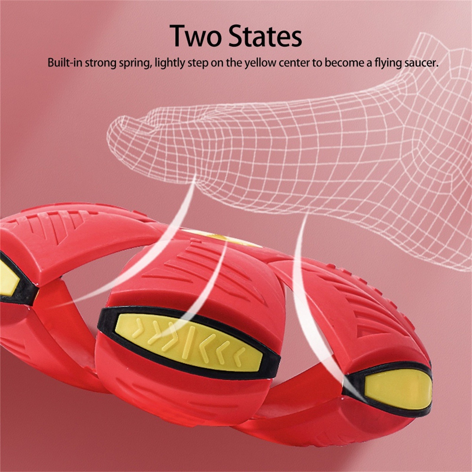 -Throw a disc, catch a ball. Just squeeze down on the ball to set the time-delay, then throw it as a disc. The disc will pop back into a ball at random!