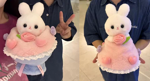 Princess Bunny Transforms into a Bouquet Plush Rabbit Doll