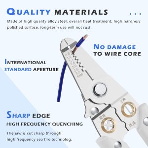 Compatible with a Variety of Wire Specifications: Multi-functional stripping pliers have a precise stripping hole design, different thickness of the wire to choose the corresponding stripping hole. When stripping the wire, the cut of the wire skin is neat and the core is not easily damaged.